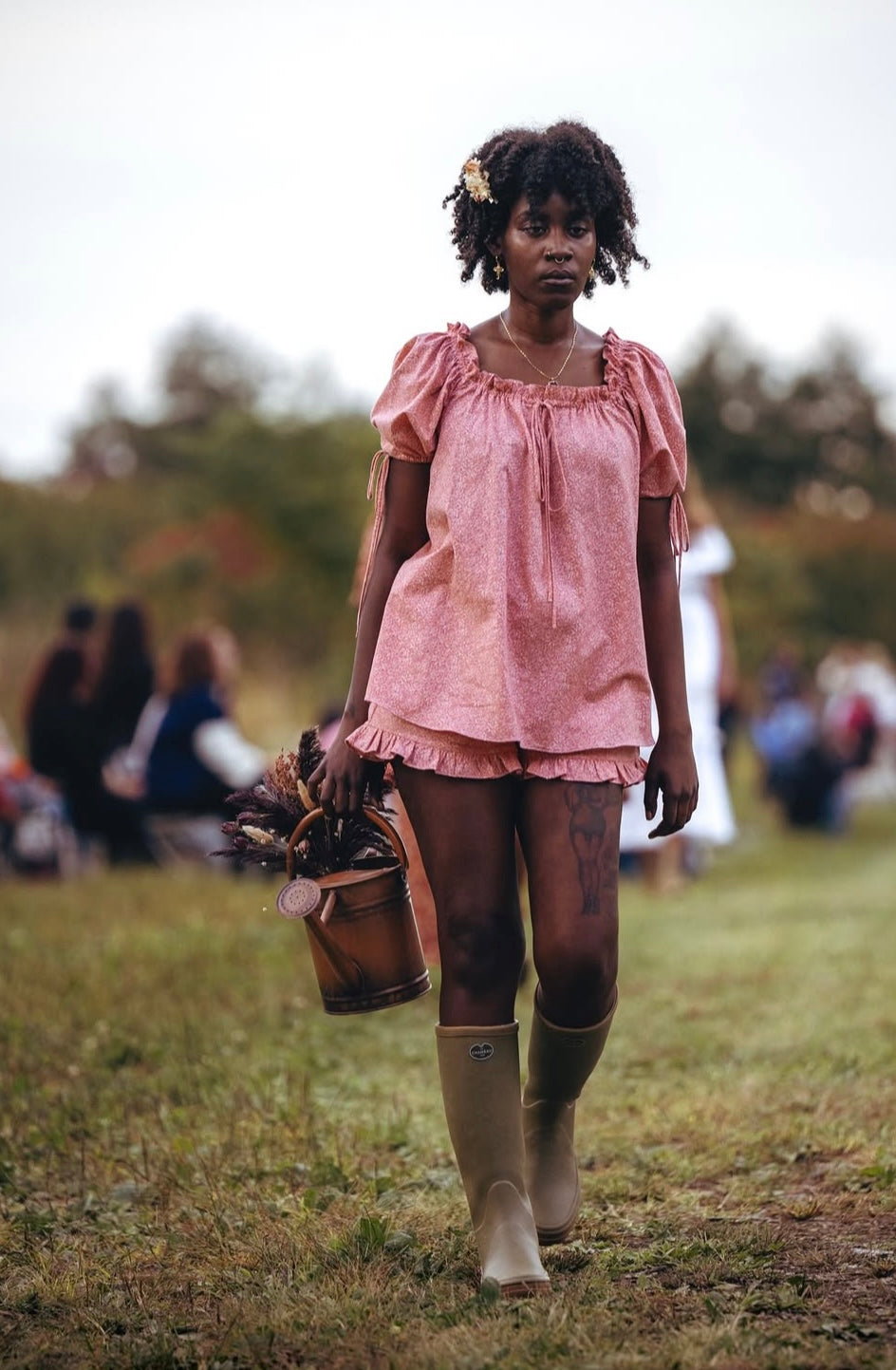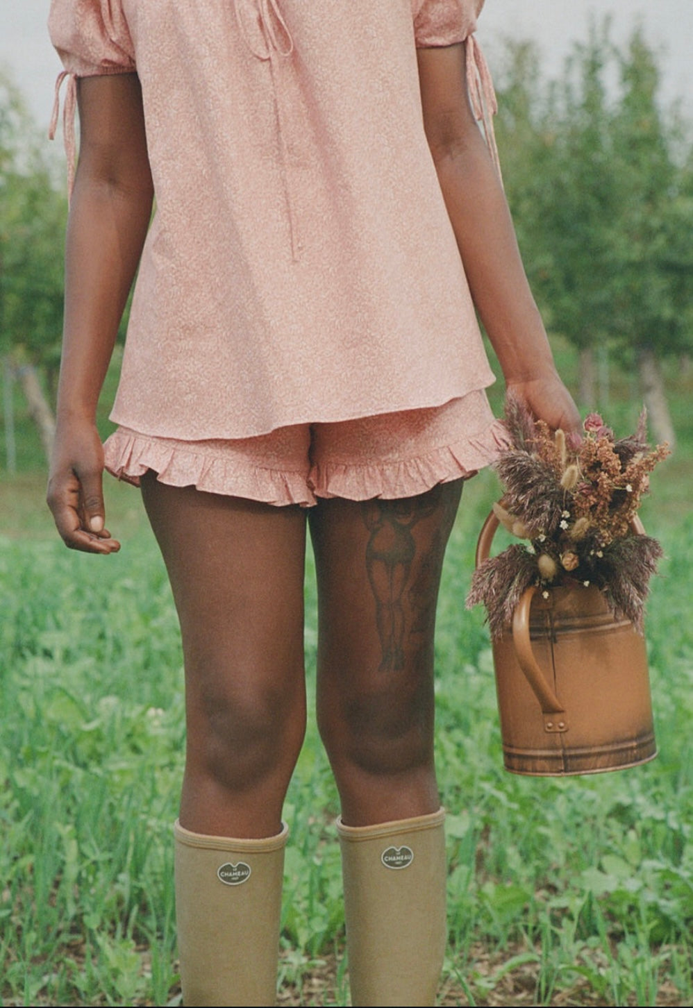 Handcrafted from vintage cotton poplin, the Easy Ruffle Short features an elastic waistline and cheeky ruffled hem. Meticulously finished with french seams and classic garment making techniques - as beautiful on the inside as it is out. Unlined.