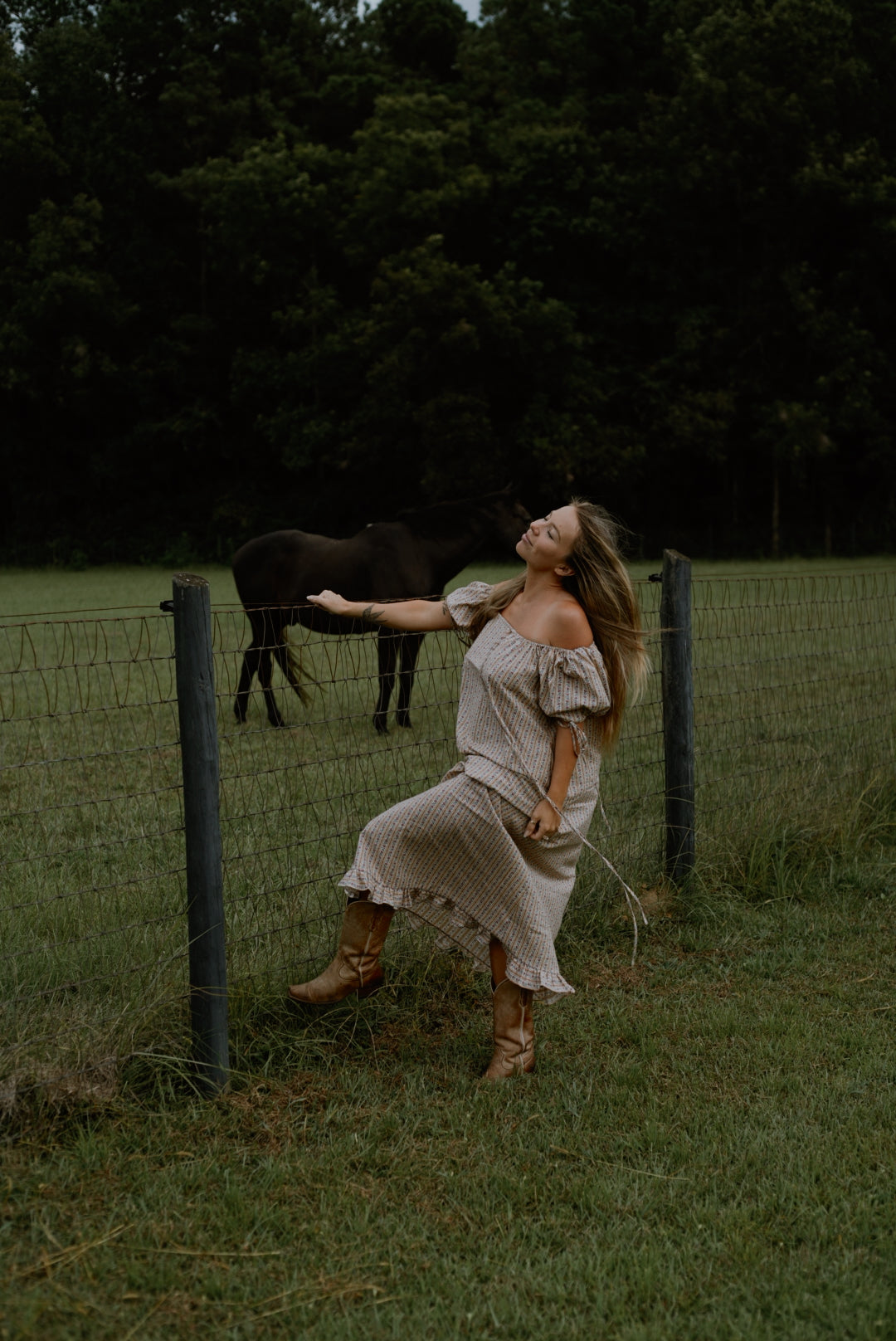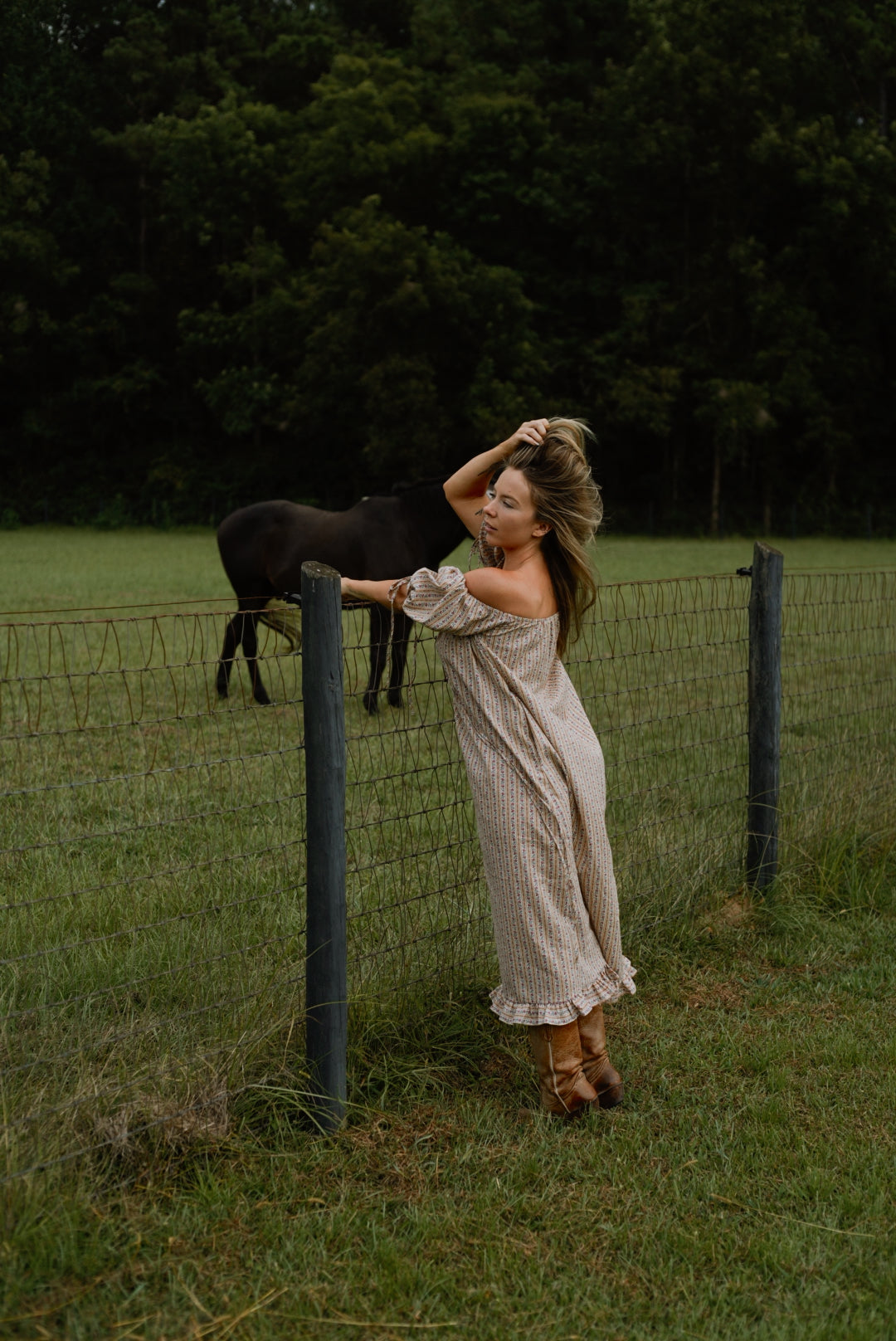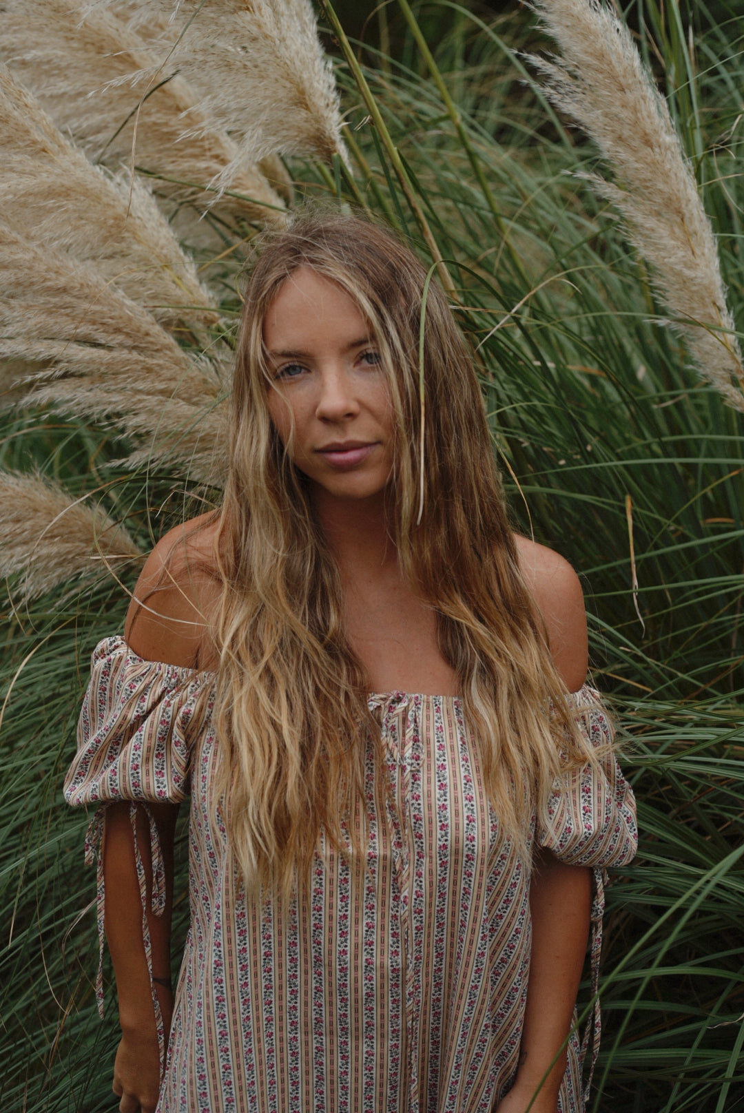 Handcrafted from vintage cotton, the Millie Housedress features an adjustable elastic square neckline, romantic puffed sleeves, ruffled hem, and a breezy effortless silhouette. Featuring a functional slender neck and sleeve ties allowing you to adjust the fit, as well as pockets to store all your little somethings — wear on or off-the-shoulder. The Millie Housedress rendered in our Autumn Stripe vintage cotton — soft girl autumn is here. Pairs beautifully with your favorite lofty sweater and boots. Meticulously finished with french seams and classic garment making techniques — as beautiful on the inside as it is out. Unlined.