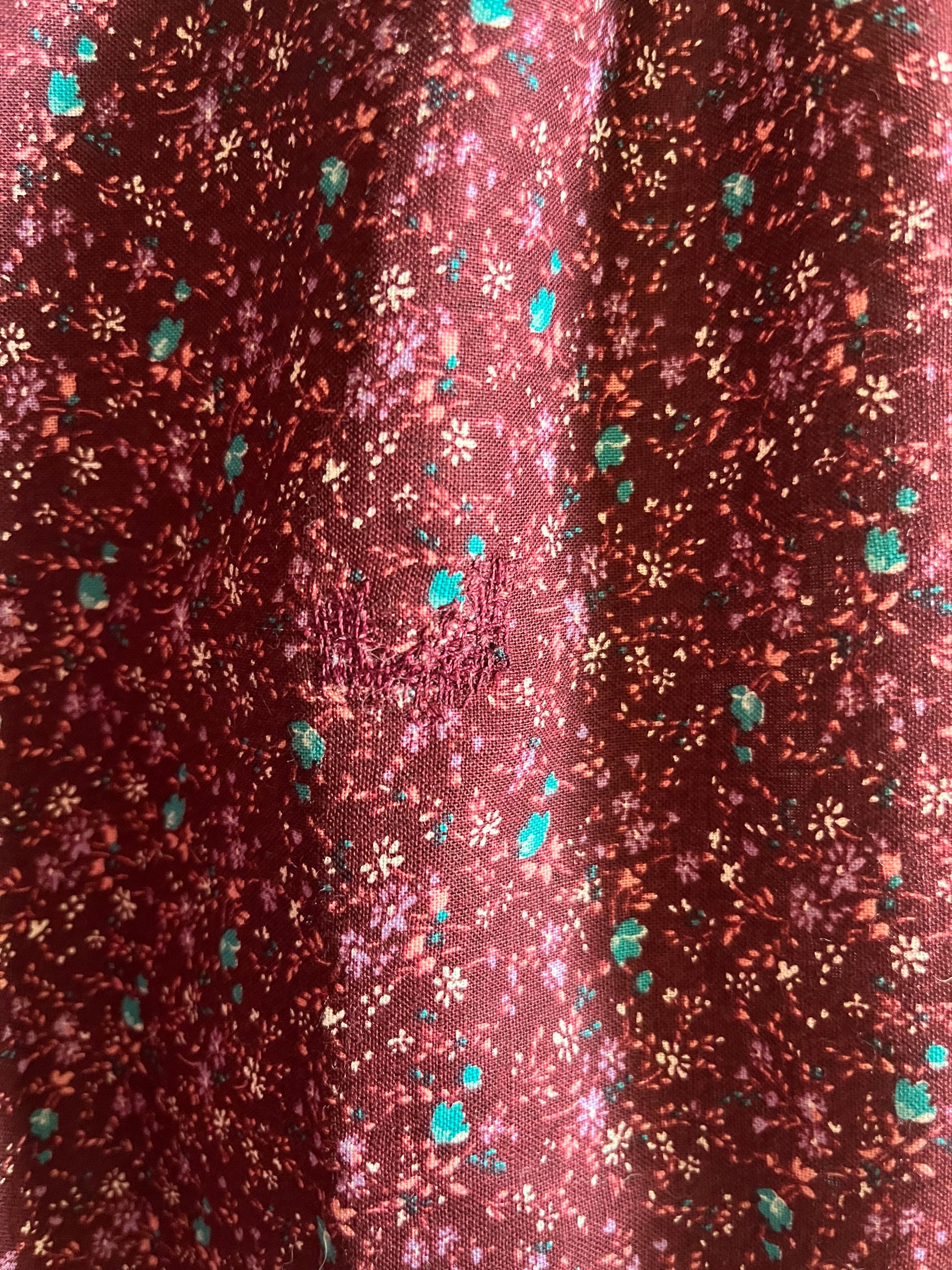 Lovingly mended at the center front, this vintage fabric carries its history with grace -- what once was a flaw is now a mark of resilience and beauty. See photos for details.