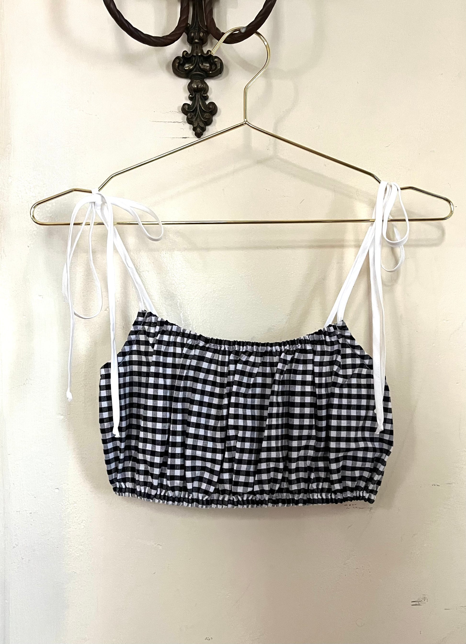 Handcrafted from the sweetest cotton gingham, the Picnic Top features a subtle scoop neckline and slender adjustable tie straps in a contrast white cotton. Elastic along the top and bottom of the top allow for comfort and support for a range of chest sizes, as well as an adjustable back neckline to cater the top neckline to your preferred fit. Meticulously finished with french seams and classic garment making techniques - as beautiful on the inside as it is out. Unlined.