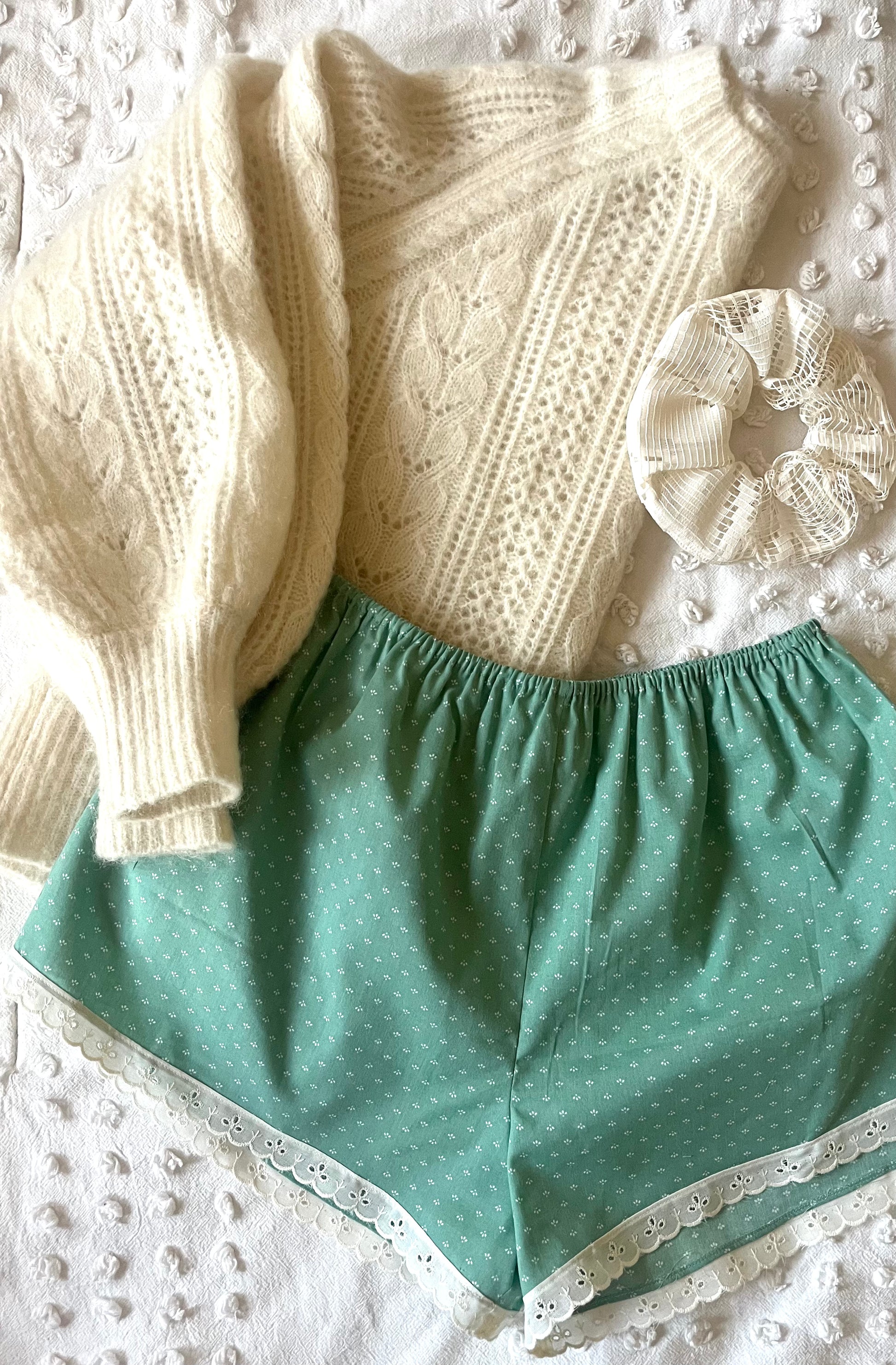 Handcrafted from a vintage cotton blend, the Bloomer features a flattering high cut elastic waistline and detailed with vintage embroidered cotton voile trim along the hem. Meticulously finished with french seams and classic garment making techniques - as beautiful on the inside as it is out. Unlined.